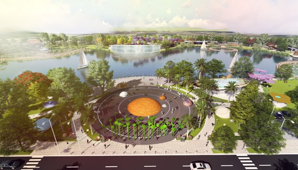 Đất cây xanh đô thị (bao gồm diện tích mặt nước): 163.698 m2