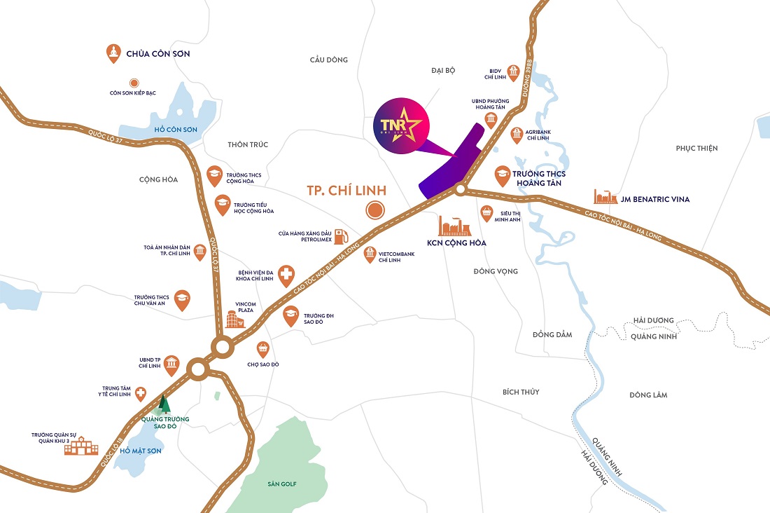 Với vị trí kim cương còn sót lại tại TP Chí Linh, TNR Stars Chí Linh sẽ phát huy tối đa vị thế và tiềm năng là hạt nhân trong tam giác kinh tế Hà Nội – Hải Phòng – Quảng Ninh, điểm kết nối quan trọng trên chuỗi đô thị Bắc Ninh – Chí Linh – Đông Triều – Mạo Khê – Uông Bí – Hạ Long.