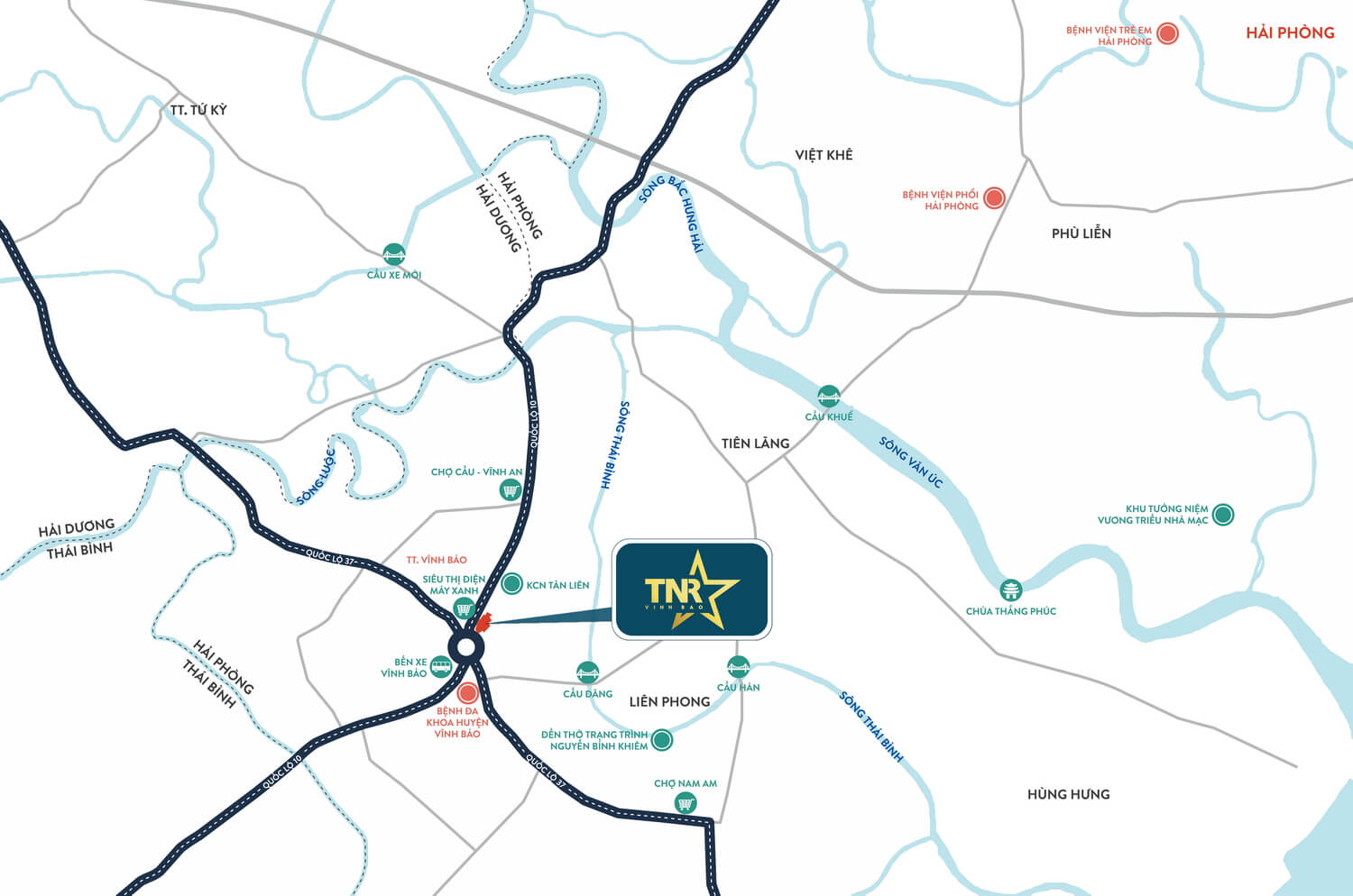 Sở hữu vị trí đắc địa, TNR Stars Vĩnh Bảo được định hướng trở thành khu đô thị kiểu mẫu mang tính chất biểu tượng; đồng thời khẳng định vị trí và góp phần thực hiện chiến lược phát triển Thương mại – Dịch vụ - Kinh tế của Vĩnh Bảo dựa trên nền tảng vững chắc từ hạ tầng giao thông đồng bộ.