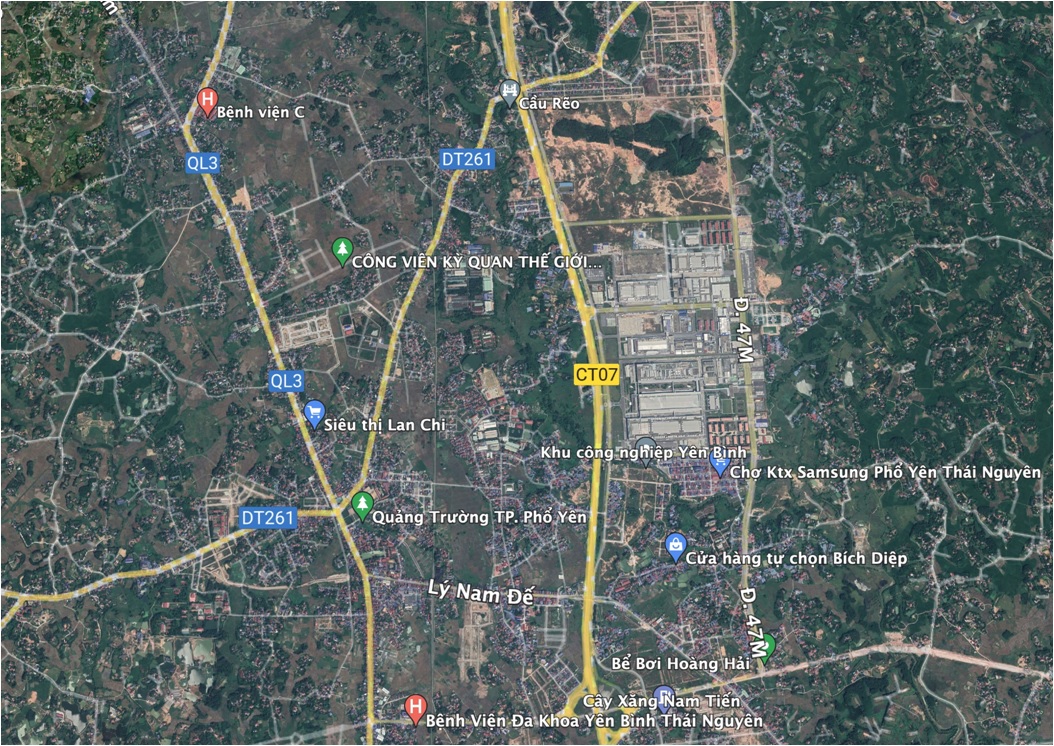 • Địa chỉ: phường Đồng Tiến và phường Bãi Bông, TP Phổ Yên, Tỉnh Thái Nguyên