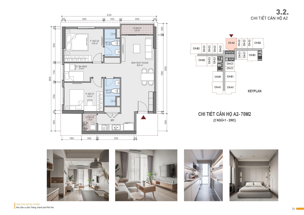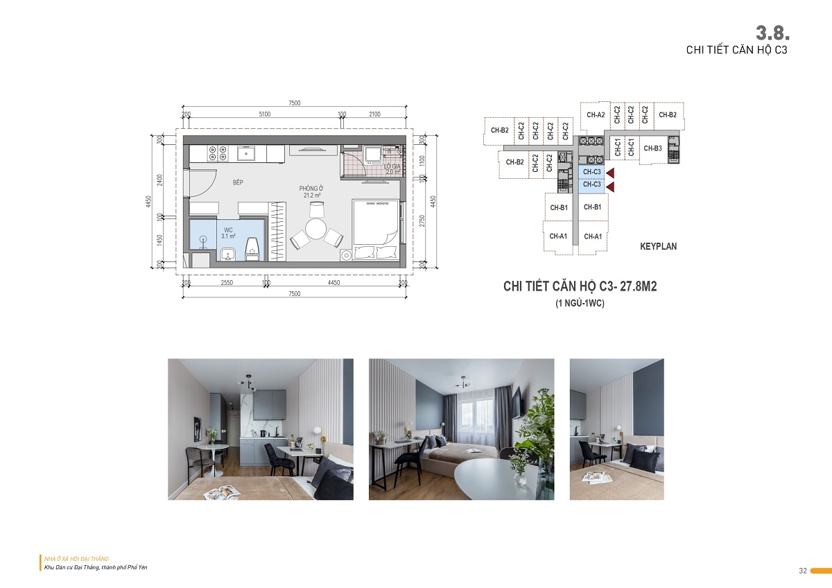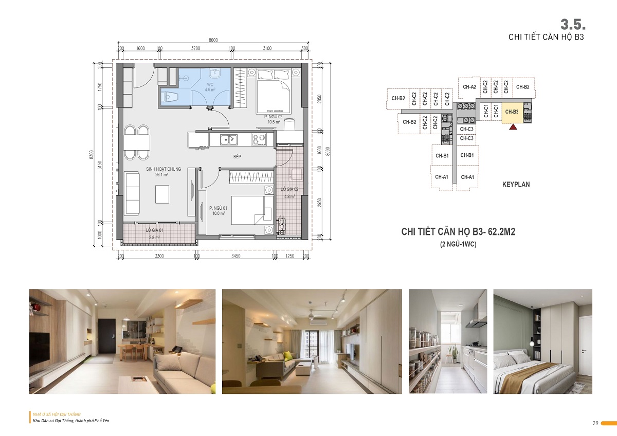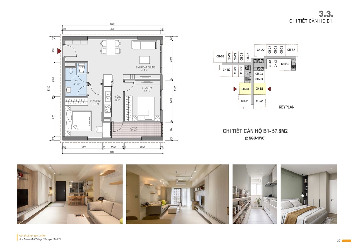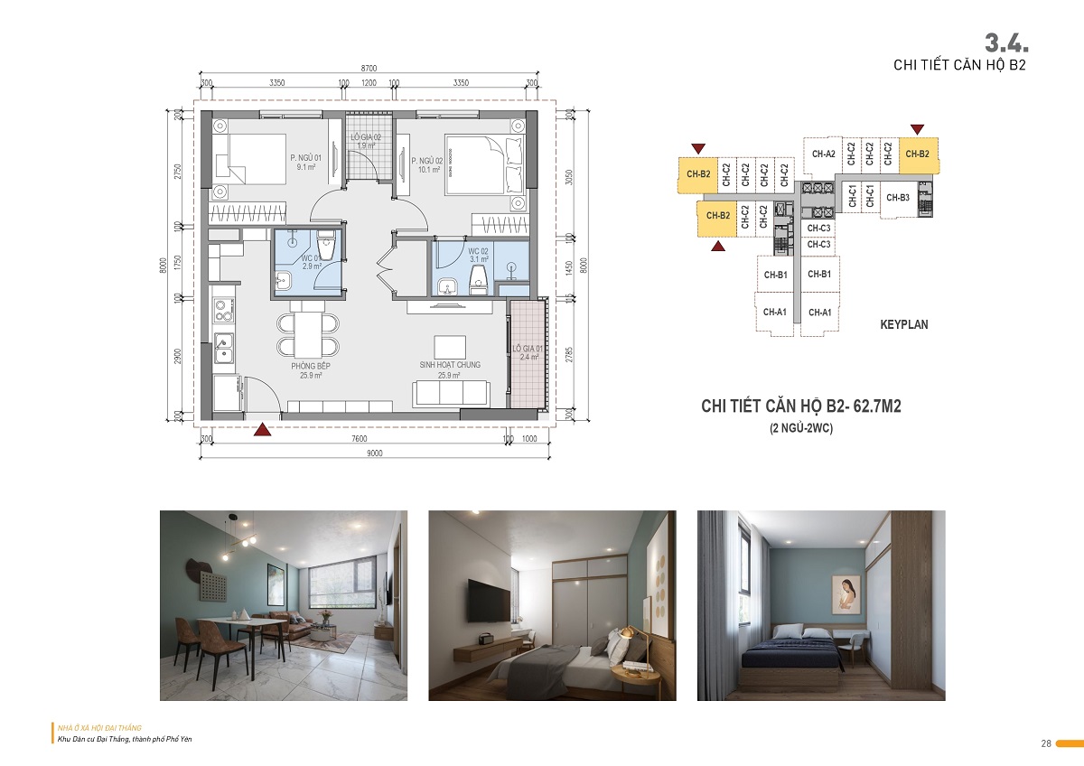 Chủ đầu tư xây dựng 395 căn NƠXH với diện tích 3.963 m2 (mật độ xây dựng 47%) được bố trí đa dạng các loại hình căn hộ gồm: 34 căn nhà ở liền kề xây 2 tầng với diện tích sàn xây dựng là 4.756 m2; 01 tòa nhà chung cư cao 18 tầng với 361 căn hộ, tổng diện tích sàn xây dựng 24.602 m2. Thiết kế căn hộ có diện tích từ 26,7m2 – 70m2 được bố trí từ 1-3 phòng ngủ, đầy đủ công năng sử dụng, tầm nhìn toàn cảnh. 100% căn hộ có bố trí cửa sổ, đảm bảo ánh sáng tự nhiên và có tầm nhìn thoáng rộng ra khung cảnh bên ngoài
